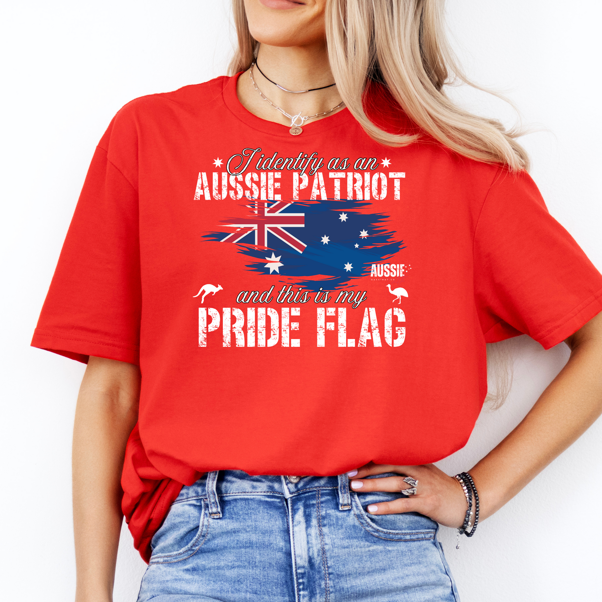 Stand tall and wear your pride with the I Identify as an Aussie Patriot T-shirt. Featuring a bold Australian flag design with the statement “and this is my pride flag”, this shirt is made for those who aren’t afraid to show their love for country and values. Perfect for Australia Day, backyard BBQs, or simply repping your Aussie spirit any day of the week.