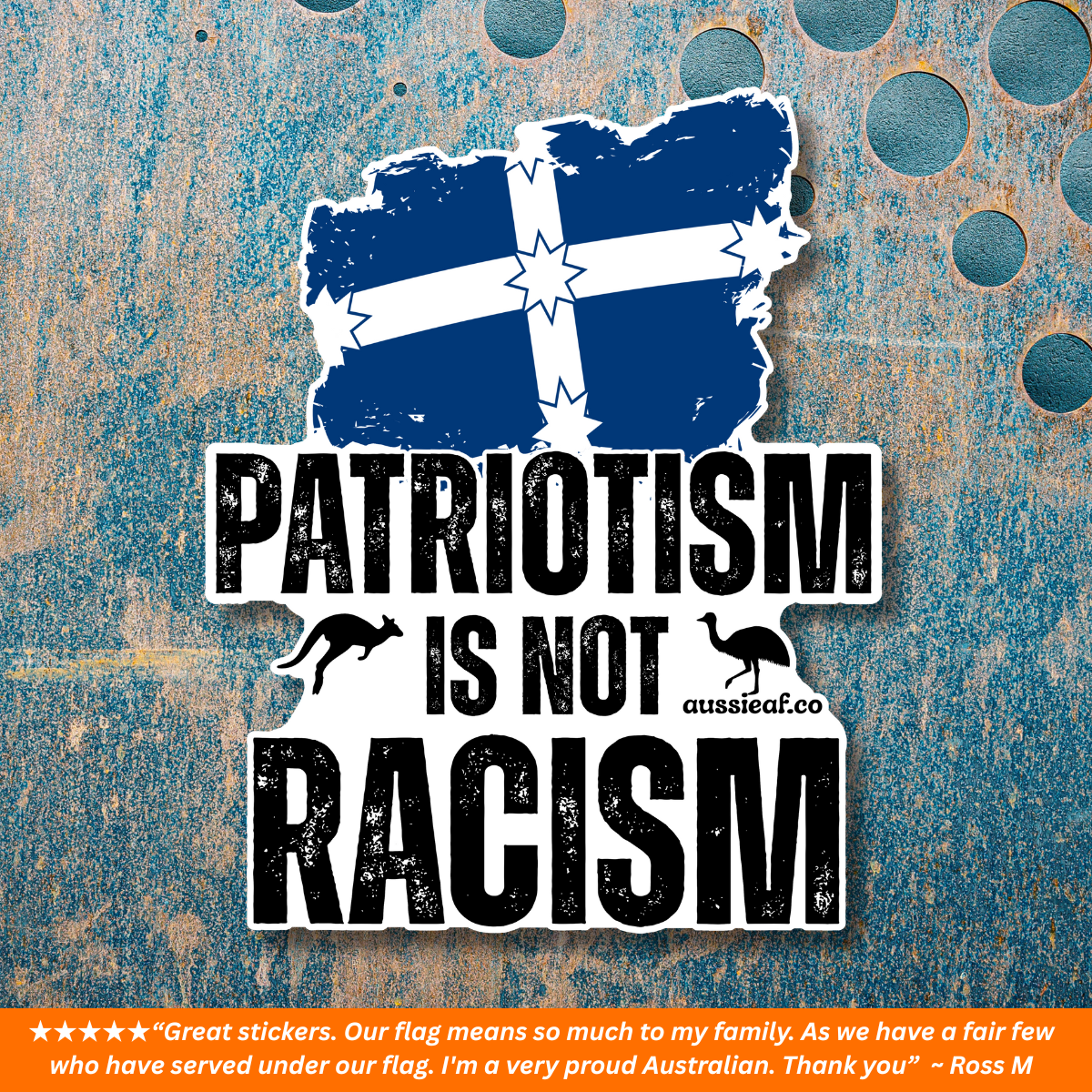 Make your stance clear with the AussieAF™ 110mm x 147mm “Patriotism is Not Racism” Eureka Flag Sticker - a common sense statement design that speaks louder than words.