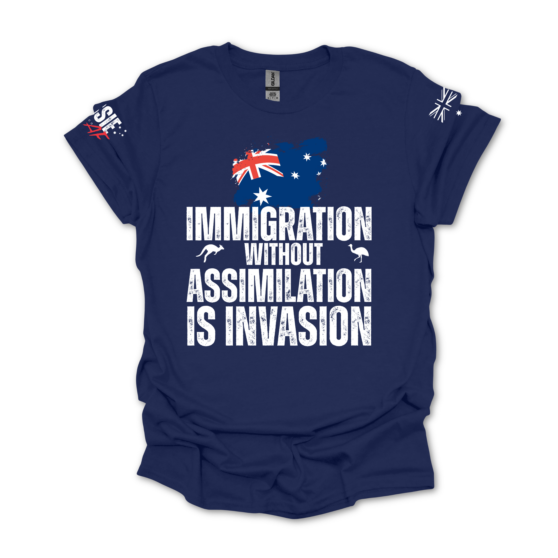 Immigration without Assimilation is Invasion Aussie Flag T-Shirt with Sleeve Printing