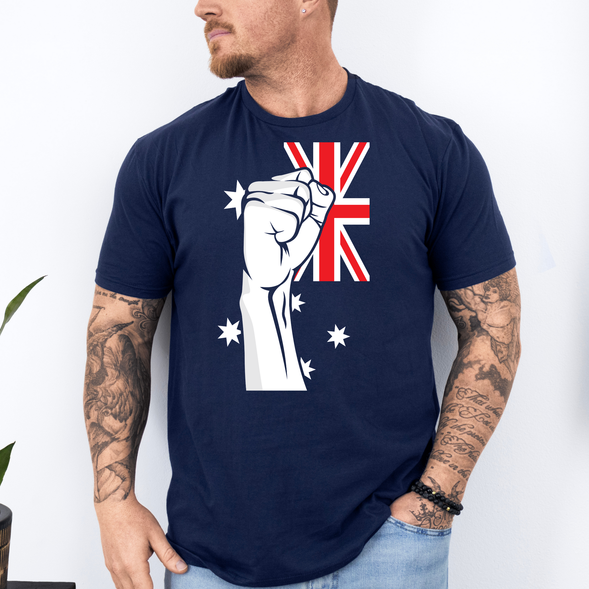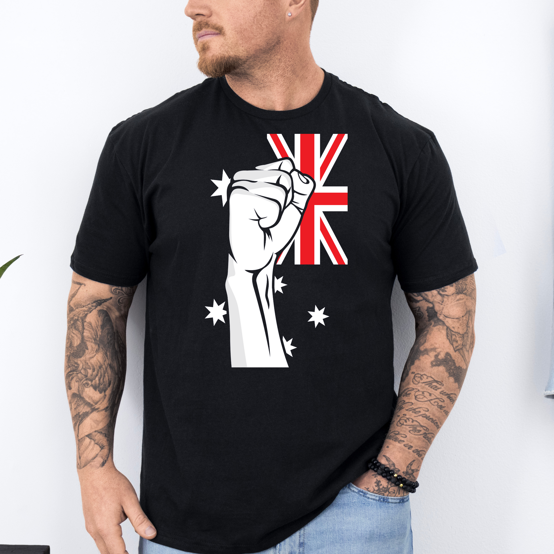 Stand proud. Stand strong. Wear the Raised Fist Aussie Flag Shirt and carry the spirit of resilience wherever you go.