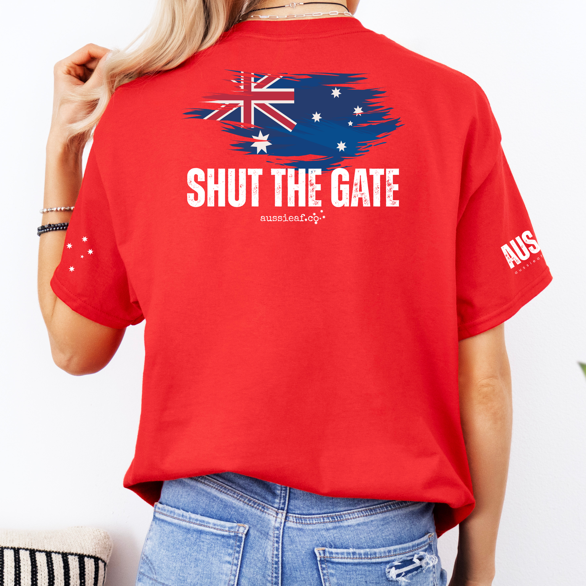 Shut the Gate Australian Flag Unisex BACK & Sleeve Printing