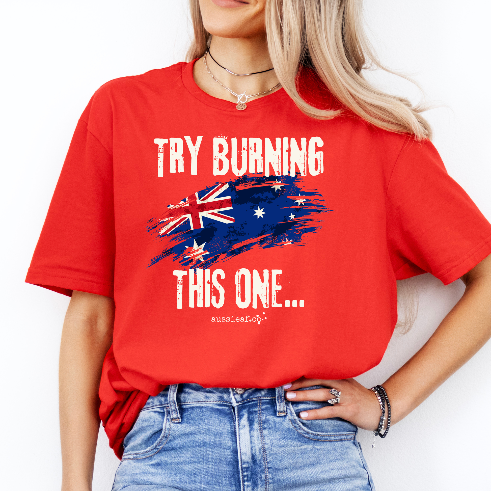 Try Burning This One Australian Flag Unisex FRONT Print Shirt V3
