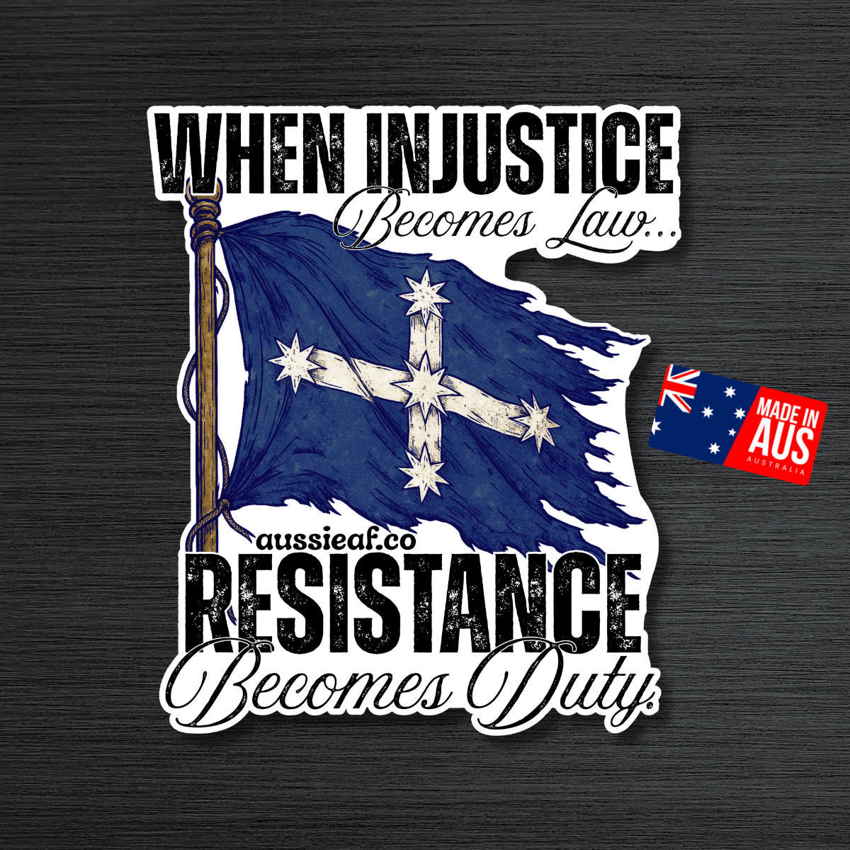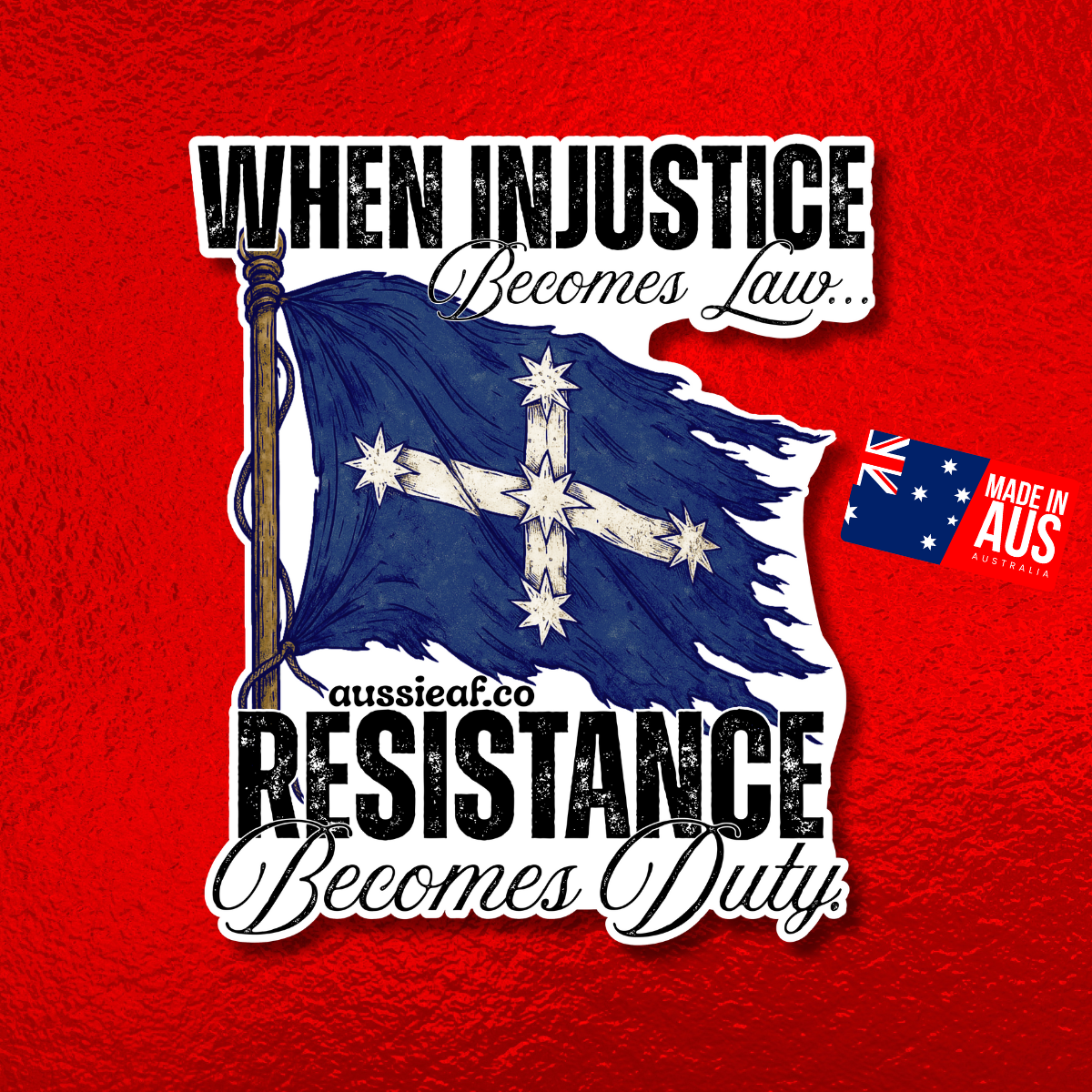 Make your stance clear with the AussieAF™ 110mm x 129mm “When Injustice Becomes Law, Resistance Becomes Duty” Sticker - a hard-hitting design that speaks louder than words.